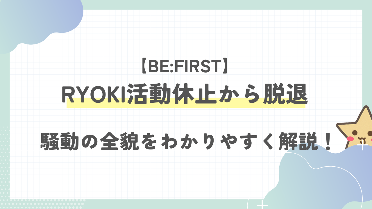 人気ボーイズグループ・BE:FIRST(ビーファースト)のメンバーだったRYOKI(リョウキ)さんが、ついに脱退を発表しました。