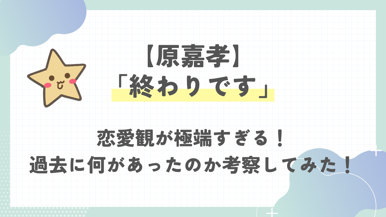 今回は、原嘉孝の極端な恋愛観と、過去の恋愛になにがあったのか考察してみます!